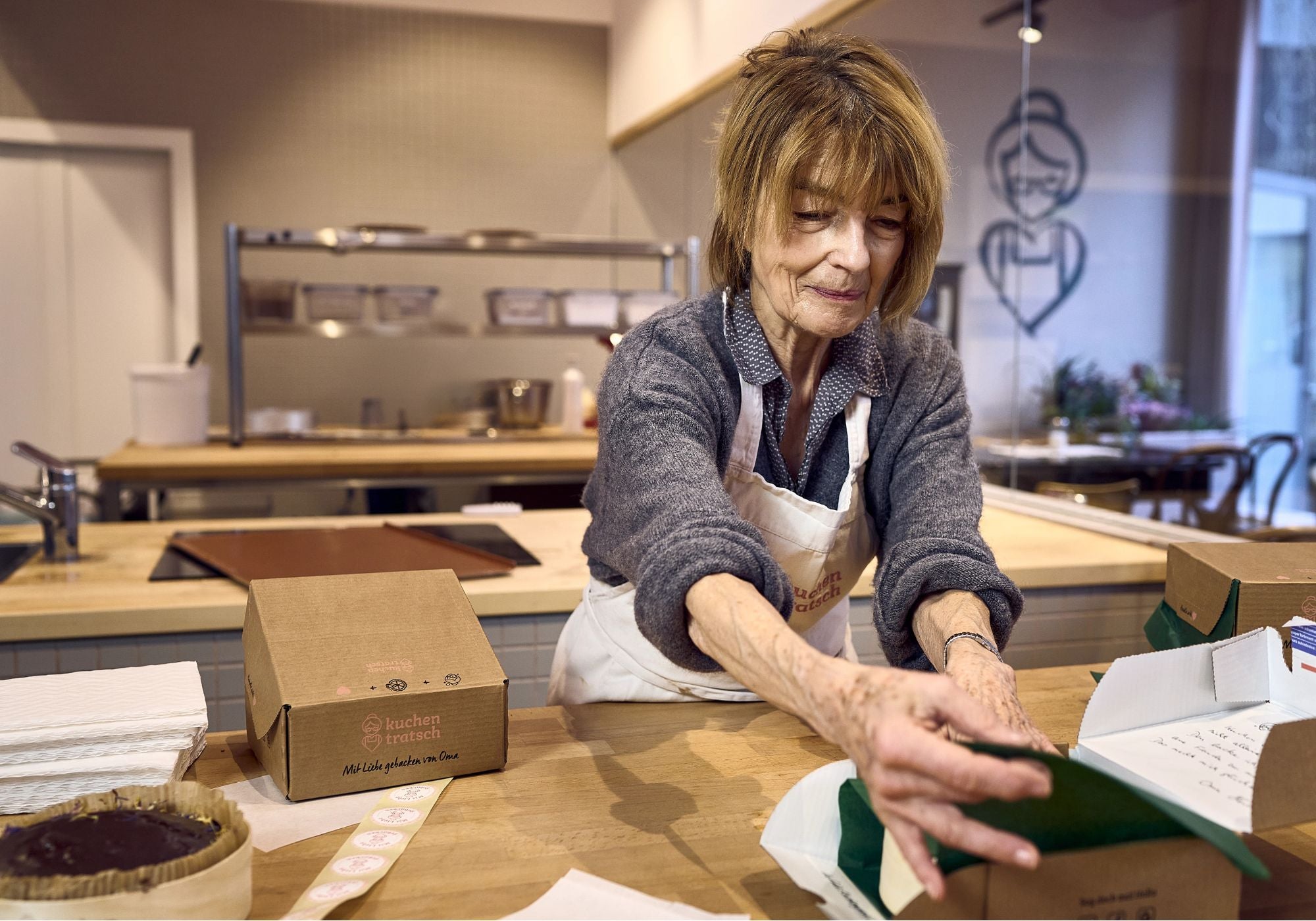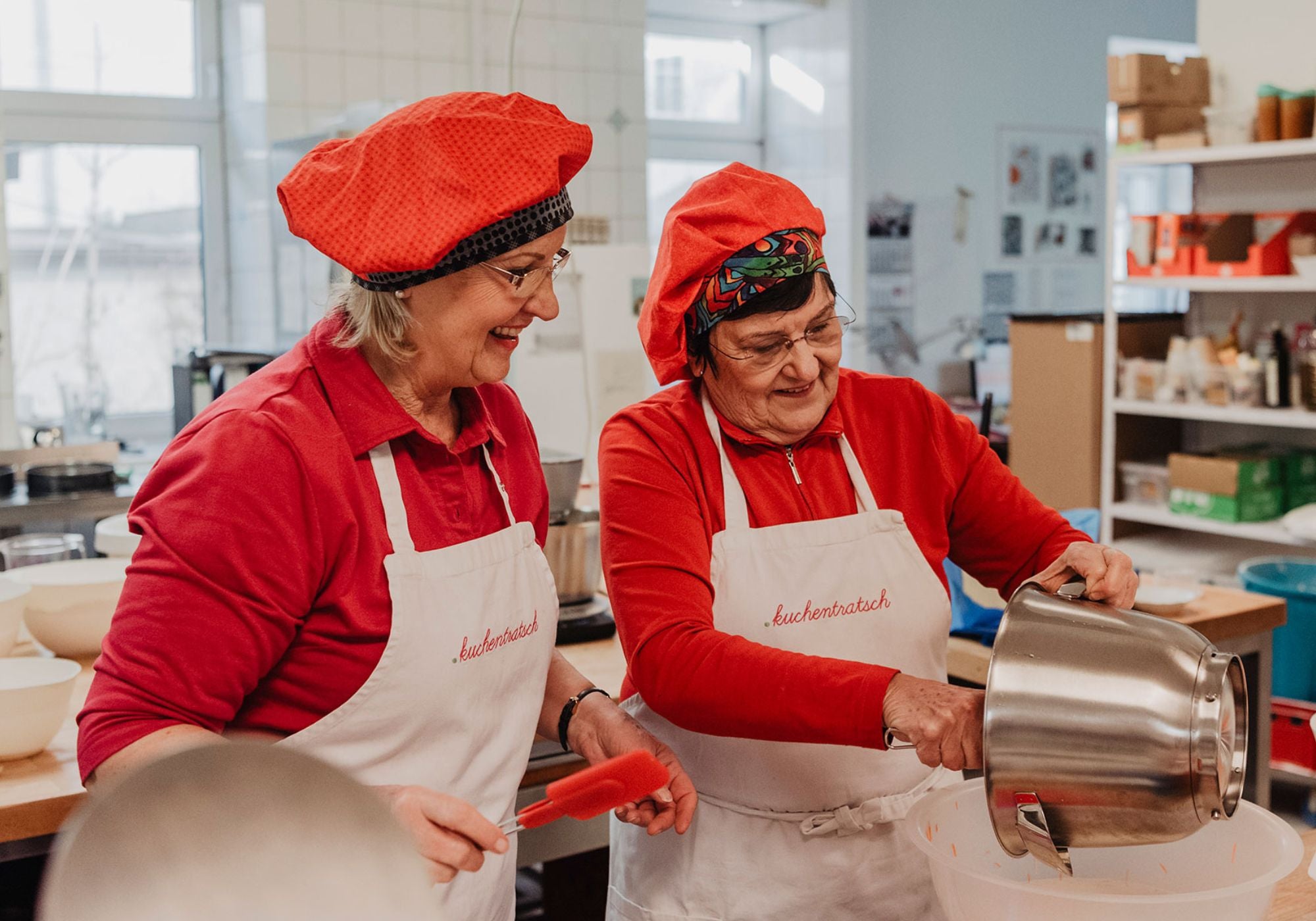 Mit jeder Bestellung unterstützt du unsere soziale Backstube für Senior:innen, in der sie beim gemeinsamen Kuchen backen Kontakte knüpfen, ihrer Backleidenschaft nachgehen und sich etwas zur Rente dazu verdienen können.